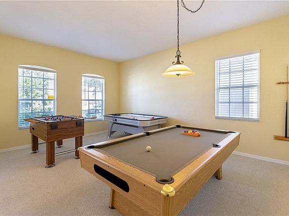 Don't miss out on this OUTSTANDING turn-key 4-bedroom, 3-bathroom fully furnished single story home in the Highlands Reserve Golf Community. This home is near the end of Troon Circle with a south facing pool. You will be able to enjoy the Florida sun all day long. This home is light and airy with a huge indoors games room which includes foosball, air hockey and pool tables. The kitchen features beautiful granite countertops and stainless steel appliances. As you make your way through this tastefully decorated home you'll find a separate family room and double sliding doors that lead out to your gorgeous pool deck with plenty of room to lounge around. This home boasts double master ensuites, plus two additional bedrooms and 1 additional full bath. The primary master ensuite is equipped with dual sinks, along with a soaking tub and separate shower. New Pool heater in 2015 and A/C in 2016! Highlands Reserve features a championship 18-hole golf course, community playground, tennis courts and pool. You'll be just minutes away from all Orlando area attractions including Disney, Universal Studios and Sea World. Your search for the perfect home is over! Call now to schedule your showing!