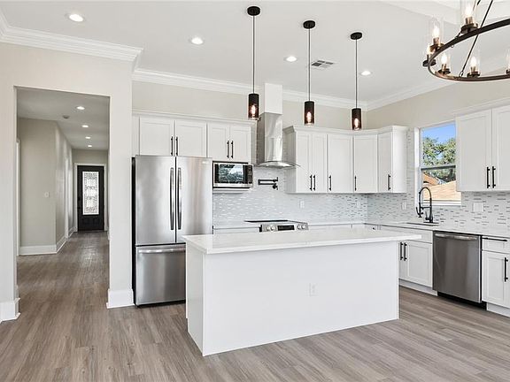 Move-In Ready New Construction. This stunning 4-bedroom, 2.5-bathroom home offers the perfect blend of modern luxury and comfortable living. Nestled in a prime Metairie location, you'll enjoy easy access to shopping, dining, and entertainment. The key features of this beautiful home include a spacious and open floor plan. The layout is great for entertaining or relaxing. Modern, gourmet kitchen features quartz counters, stainless steel appliances, a large island for workspace, and beautiful tile backsplash. The primary bedroom suite is a true retreat with an ensuite bathroom featuring a separate tub and shower, double vanities, and a large walk-in closet with built-ins. Enjoy the privacy of a large fenced backyard, would function for outdoor gatherings. The home boasts upgraded lighting and finishes throughout. Don't miss this opportunity to make this beautiful new home yours!