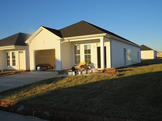 NEW CONSTRUCTION, BLUEGRASS PARK SUBDIVISION - TWO BEDROOM, TWO BATH, 9 FT CEILING, GRANITE COUNTER TOPS, CORNER LOT, SINGLE CAR GARAGE, ALL VINYL, ZERO LOT LINE LOTS, HOPKINSVILLE'S NEWEST SUBDIVISION, REFRIDGERATOR NOT INCLUDED, ACCOMPANING PHOTOS ARE OF A PREVIOUSLY COMPLETED UNIT AND HAVE BEEN INCLUDED TO SHOW A FINISHED PRODUCT. HOA FEES $1,200 PER YEAR INCLUDES MOWING EACH YARD, MULCHING AND TRIMMING TWO TIMES A YEAR, 4 YARD TREATMENTS, MAINTENANCE. OF ALL COMMON AREAS TO INCLUDE ENTRANCE, VINYL COLOR IS WHITE,,COMPLETION APPROXIMATELY 4 WEEEKS.