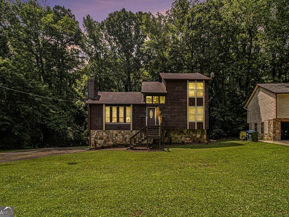Welcome to 300 Twin Tendrils SW - a beautifully updated home offering the perfect balance of space, style, and location. Step into the dramatic two-story foyer, where exposed wooden beams and a floor-to-ceiling stone fireplace create an inviting and rustic elegance in the main living area. The formal dining room is ideal for hosting, while the kitchen features vaulted ceilings, a cozy breakfast nook, and an easy flow for everyday living. Down the hall, two spacious guest bedrooms share a well-positioned full bath, providing privacy and comfort. Upstairs, you'll find a serene, yet bright primary suite with vaulted ceilings that truly feels like a retreat, complete with a generous walk-in closet and a spacious en-suite bathroom. Fresh paint and new carpet throughout add a clean, move-in-ready finish. The lower level adds even more flexibility with an additional half bath, a fourth bedroom, and bonus space perfect for a home gym, office, or media room. Set on a large, level lot just outside the city, this home combines suburban peace with urban convenience - minutes from I-285, I-20, Hartsfield-Jackson International Airport, and vibrant downtown Atlanta. Whether you're looking to entertain, grow, or simply unwind, 300 Twin Tendrils SW is the ideal place to call home.