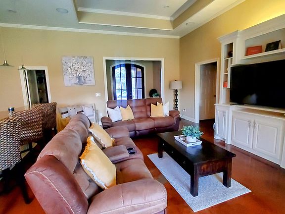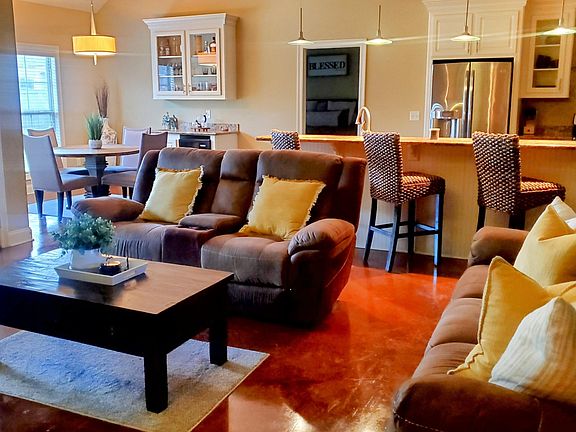 This beautiful corner lot home boast a custom built open floor plan with 3BR, 2BA,scored floors, granite countertops throughout, Kitchen with a pot filler and a automatic touch faucet,leading to the breakfast nook that has a built-in wet bar with a sink and wine cooler. Greatroom with custom built-in cabinets, gas fireplace, 5 blade remote control ceiling fan, surround sound throughout the home and on the
