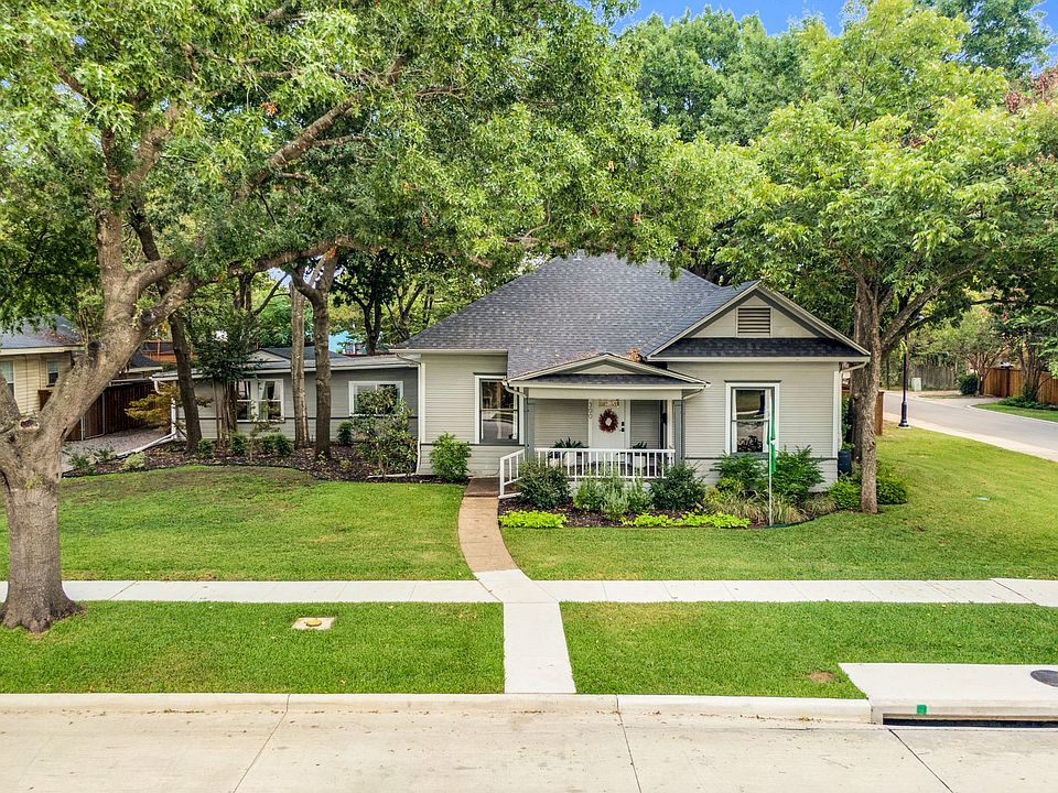 Charming renovated home on one of the most desirable streets in Waxahachie! This beautifully updated property features historic charm with modern finishes throughout. The bright living room boasts hardwood floors, large windows, and contemporary lighting. The stunning kitchen showcases white shaker cabinets, herringbone tile backsplash, quartz countertops, and stainless steel appliances. Rich teal accent wall in the dining area adds character, complemented by geometric window treatments and pendant lighting. Premium hexagon tile flooring in kitchen. The oversized bedrooms are all split from the Primary. Private oasis with towering mature trees creating natural shade & serenity on an oversized corner lot. Expansive deck with string lights perfect for entertaining. Landscaped areas ready for your gardening vision. Fenced yard offers complete privacy in this tree-lined retreat. Front porch perfect for relaxing. Move-in ready with thoughtful design elements and quality craftsmanship. Located on a peaceful newly updated street with easy access to local amenities. Don't miss this gem!