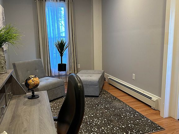 Just off the farmer's porch sits this charming 3 bedroom apartment. From the porch, enter into a modern kitchen with granite counters and stainless steel appliances. Off the kitchen, a large living room with stylish built-ins stretches the whole width of the building. The remainder of the first floor consists of a bedroom and full bath. Upstairs are two bedrooms, including one with double closets. *agent interest*