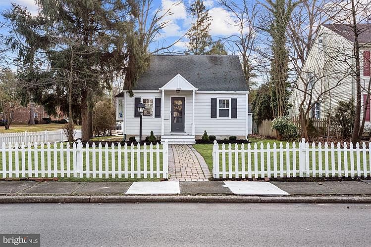 Charming cottage home with white picket fence, screened in back porch, and mature yard. A short walking distance to downtown Moorestown and activities. Once inside you will be drawn to the renovated kitchen, upgraded bathrooms and great natural lighting. The kitchen wows with new white cabinets, quartz counters, a stunning marble backsplash, stainless steel appliances and an adjacent mudroom area. The backdoor opens onto the roomy screened in porch. The first floor includes a dining room, living room, bedroom (or office, playroom) and an updated full bathroom. The second floor has two bedrooms and an updated full bath. The master bedroom has new carpet and a walk-in closet. The basement has been upgraded with a new subfloor drain for a dry interior. From the back porch, you have access to the driveway and the mature fenced backyard. There is a garage and a large playhouse outside which could be used for additional storage. This home has been tastefully designed in neutral colors and is move-in ready! Located minutes to the shops, restaurants, public transportation, major highways and just 20 minutes to Center City Philadelphia.