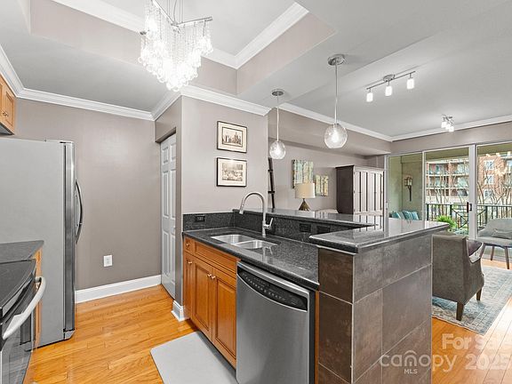 Welcome to this beautifully located 1-bed, 1-bath condo in the highly sought-after Fifth & Poplar community where you can enjoy the perfect blend of urban living & tranquility. Inside, the condo features an open floor plan perfect for comfortable living. Step outside to your peaceful balcony, where you can unwind & enjoy the courtyard view. This home also includes a dedicated parking spot in the gated parking garage, along with a storage unit for added convenience. Plus, the grocery store located within the parking garage makes everyday errands a breeze. Fifth & Poplar offers a wealth of amenities to enhance your lifestyle, including a pool, clubhouse, putting green, dog park, picnic area, cyber cafe, & fitness center. You’ll also enjoy the peace of mind that comes with 24-hour concierge service. Live the best of both worlds — with the vibrant energy of Uptown at your doorstep & a peaceful, relaxing home to retreat to. Don’t miss the opportunity to make this condo your own!