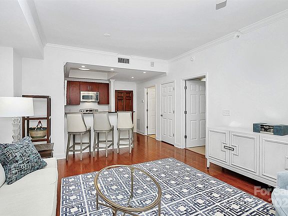 Featuring an EXTRA LARGE balcony, you'll instantly feel at home in this bright, beautiful courtyard facing 1 bed/ 1 bath unit at the highly sought after 5th & Poplar Complex!! Updated lighting throughout (2020), recently painted interior, granite countertops, wood cabinets, wood floors, stainless steel appliances (refrigerator replaced in 2022); Washer/ dryer/ refrigerator to stay, newer HVAC unit (2019). Amenities include 24 hour concierge, resort style pool, 1 full acre courtyard, workout facility (recently remodeled), fireside terrace, cyber cafe', clubhouse, putting green, pet park & gated, assigned parking (P1 - space 130). AND Harris Teeter is located IN YOUR BUILDING - just an elevator ride away! Close to sporting events, countless dining options, nightlife, & more. You'll be so happy to call this unit your home!!