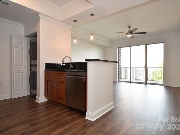 Move-In Ready! Brand new paint, new flooring throughout, new stainless appliances, new lighting! 3rd floor unit. 1 Bedroom/1 Bathroom located in the Fifth & Poplar Condominium community. Low maintenance living in the heart of uptown Charlotte! Fantastic walkable uptown location! Grocery, restaurants, retail, medical, nightlife all nearby. Spotless turn-key condo! 9' ceilings. Large Primary Bedroom with walk-in closet. Bath has new tile flooring, mirror. Soaking tub. Open Kitchen with granite breakfast bar and lots of cabinets and nice counter space for meal prep. Brand new stackable washer and dryer. Living Room. Covered balcony overlooks uptown tree-lined streets. Walk to everything in uptown's central business district. Beautiful waterfall element in Courtyard, common area. 1-car parking space in secured gated garage. Community features: business center, clubhouse, concierge, dog park, fitness center, gated community, outdoor pool, picnic area, putting green and a recreation area.