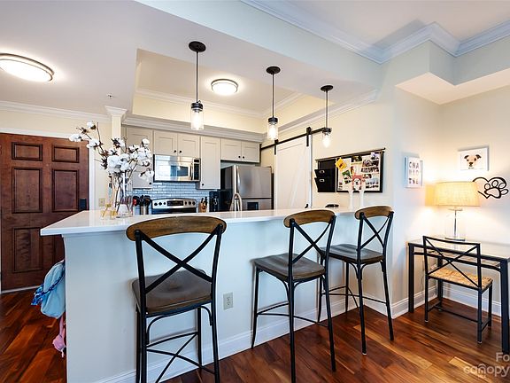 Unique and charming Corner Unit with an abundance of light! Primary Bedroom boasts Central City views while Balcony overlooks Fourth Ward Park. Completely remodeled with new walnut flooring and updated fixtures. Kitchen w/new quartz countertops and backsplash plus barn door. Both baths have been completely gutted and renovated with new tile, countertops and lighting. Primary Bath features walk in shower with bench seating , new vanity and stylish lighting and fixtures. Primary Bedroom features large walk in closet with built-in closet system. Incredible views and light from double windows on both sides. Neutral paint, crown molding and stylish decor throughout. Fifth and Poplar offers superior amenities including Cyber Cafe/Fitness Center/Outdoor Pool with multiple gathering areas, Putting Green and a Dog Park. Situated on an acre of land in Fourth Ward, it’s hard to find a better oasis in the heart of Uptown! Perhaps the best feature is the Harris Teeter on the Parking Level….