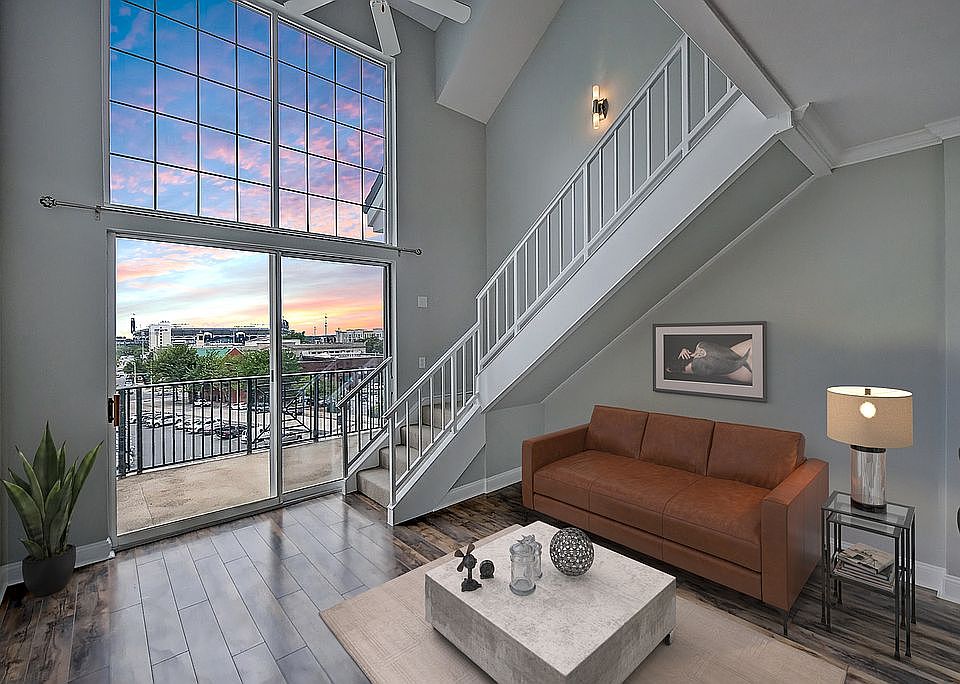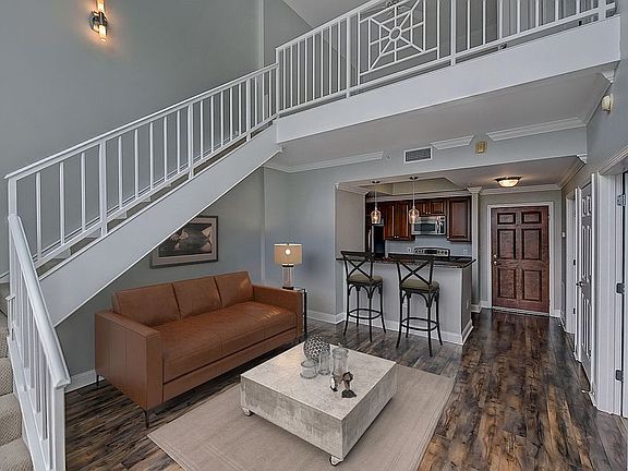 Rare opportunity, 2-story condo located in 4th Ward in the fabulous Fifth & Poplar building on the 6th floor! Walk into your 2-story great room trimmed w/2-story windows illuminating the rm w/natural light to the kitchen w/stainless appliances while enjoying views of Uptown Charlotte. Refrig, W/D to convey. 1st floor offers a bedrm w/a walk-in closet & a full bathrm w/access from the bedrm & foyer area. Spacious patio to enjoy the sunset. The upper level offers a loft great for a home office or 2nd living space, wet bar, wine cooler, & additional cabinets. Private primary bedrm w/a walk-in closet & bathrm. Amenities include 24-hour concierges, resort-style pool, courtyard, putting green, pet park, covered terrace, cyber cafe, gym, meeting/media rm, billiard table, & coffee bar. Harris Teeter is located at the bottom of the building, w/easy access to the Knights/Panthers Stadium, Belk Theater, dining, events, nightlife, & so much more! The unit is now vacant, TV mounts have been removed
