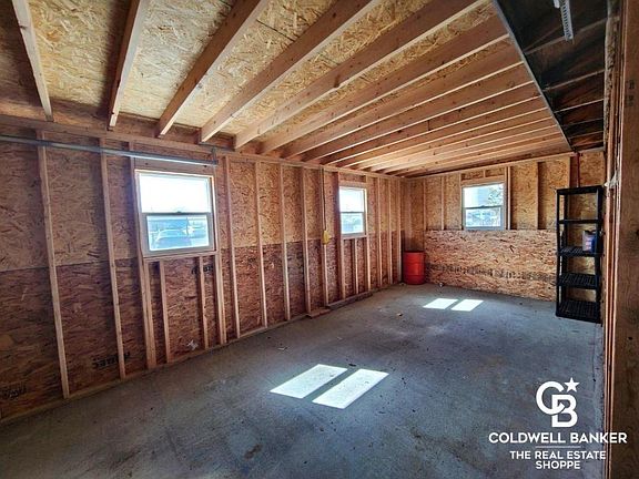 Single wide mobile home with 3 car garage.