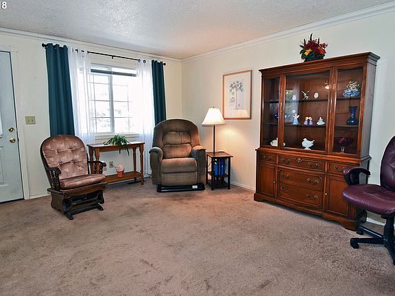 It's all about lifestyle! Popular active 55+ community w/lots of amenities. Cheery home w/OVERSIZE Master! Nice closet space, ceiling fan, slider to covered patio! Panels to enclose patio in all weather. Large pantry. HW under carpet. Crown molding. Lots of tile in kitchen and bath. Vinyl windows and Central AC. Deck in front. Single door garage,but over 18'6 WIDE inside!! Bring golf cart! Tons of storage! Sprinklers front and back.
