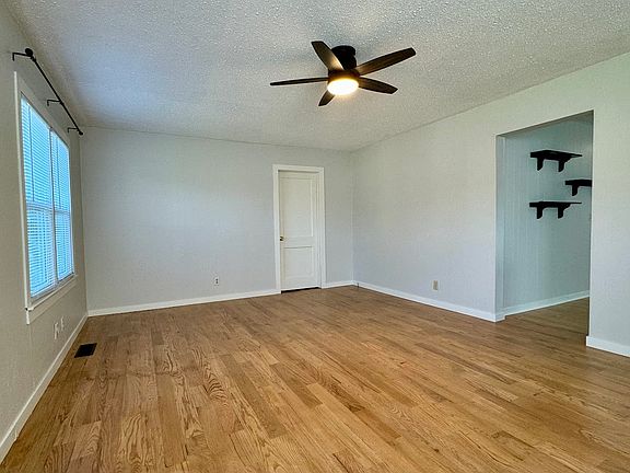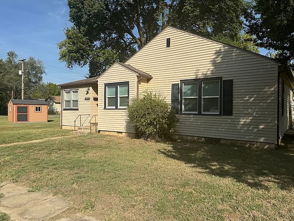 This clean and fresh 3 bedroom, 1 bath home located across from the adorable Rotary Park offers a large lot that stretches the whole block for your enjoyment. Be the first to use the brand new oak hardwood floors! The spacious living room has numerous windows, allowing abundant natural light to fill the room. This home has been refreshed and maintained with new hardwood flooring, new electrical panels, new water heater, newer appliances, cabinetry, tile, paint. New HVAC and all windows throughout help with energy efficiency (your utility bills!). Each bedroom has its own small-scale walk-in closet. The mud/laundry room off of the back entrance features cabinetry with a granite countertop workspace, a bar to hang your laundry, and room for more storage. The 12' x 8' Tuff-Shed was installed in 2022 to supply generous storage for yard equipment. If you take pride in maintaining your home and yard and will do so with this one, schedule a tour! Tenant is responsible for all utilities and yard care. Two pets under 20 pounds are accepted with a $250/each deposit and an additional $25/each/month. 12-month lease minimum. Yard care can be provided for additional monthly fee. Clean criminal and credit history required. No smoking/vapes.