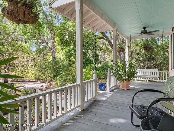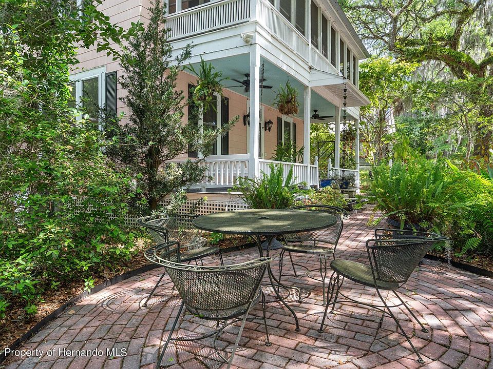 As her name implies, the ''Savannah House'' radiates Southern Charm from the moment you arrive. Come and Fall in Love with her beauty inside and out. Step onto her front porch in 19th century style, a space perfect for meeting and greeting family and guests, complete with a classic front porch swing and setting. Meticulously remodeled and restored! Entering the main living you're greeted by updated windows offering natural light illuminating the fireplace hearth, a soothing color pallet, the rich textures of crown molding and trim, and the warmth of the heart pine wood flooring that continues though the entire home. Continuing, through to her open concept kitchen , dining area with the ambiance of a second fireplace large transom windows, new cabinets, Curava countertops, island, and a full compliment of stainless appliances. French doors open the space even further, into the enjoining Sun Room. The Sun Room is sure to be a favorite space, bringing the outdoors in and immersing yourself in light, offering a place to find peace of mind, and relax. The generous master bedroom has a private ensuite bath. Upstairs is home to the second and third bedrooms split by a large landing and share the third bathroom and a large walk out balcony. Hence a name, seven thousand bricks were hand laid to create a Savannah style garden, patios and walkways nestled among mature landscape and flowering plants. Her property is located in a neighborhood boasting brick paved streets and just a short walk to historic Downtown Brooksville's Shopping, Dining, entertainment. Country and Convenience. All of this and Less than 15 minutes to the Suncoast Expressway and 45 minutes to Tampa International Airport