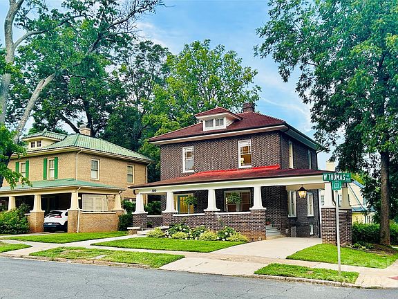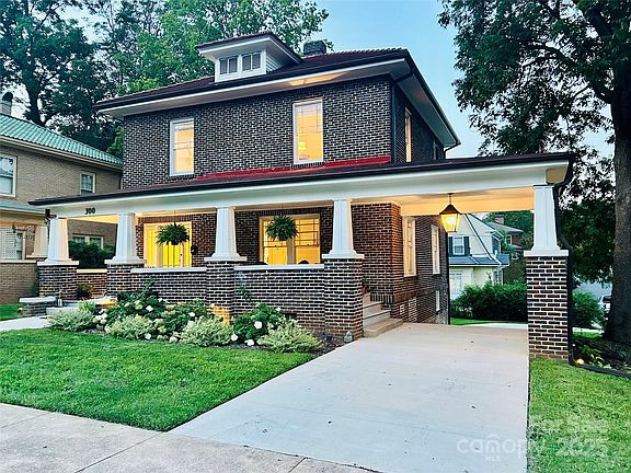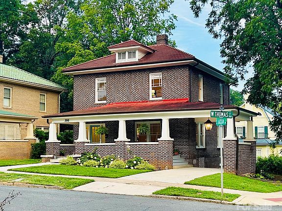 Stunning, completely renovated brick Foursquare in desirable West Square Historic District with deep veranda and stately porte-cochère over circular drive. Gracious living room offers handsome window array & original brick fireplace. Elegant formal dining room just off a NEW kitchen with quartz countertops, leaded glass windows, dual-fuel range with pot-filler, beverage fridge, & beautiful cabinetry. 1st-floor primary suite offers laundry room, huge walk-in closet, gorgeous designer bathroom. Original oak floors bleached to a neutral finish offer a light aesthetic not found in homes of this era. Upstairs: 3-BRs and sunroom, playroom, or office. Fully finished walk-out basement (heated/cooled) features media room, flex room, AND huge rec room, all with glistening epoxy floors. Additional mechanical room. Fully rebuilt rear 3-story addition with metal roof, helical piers. Fully newly rewired, plumbed, with new HVAC systems. Original terra cotta tile roof. Move-in ready ~ an amazing find!