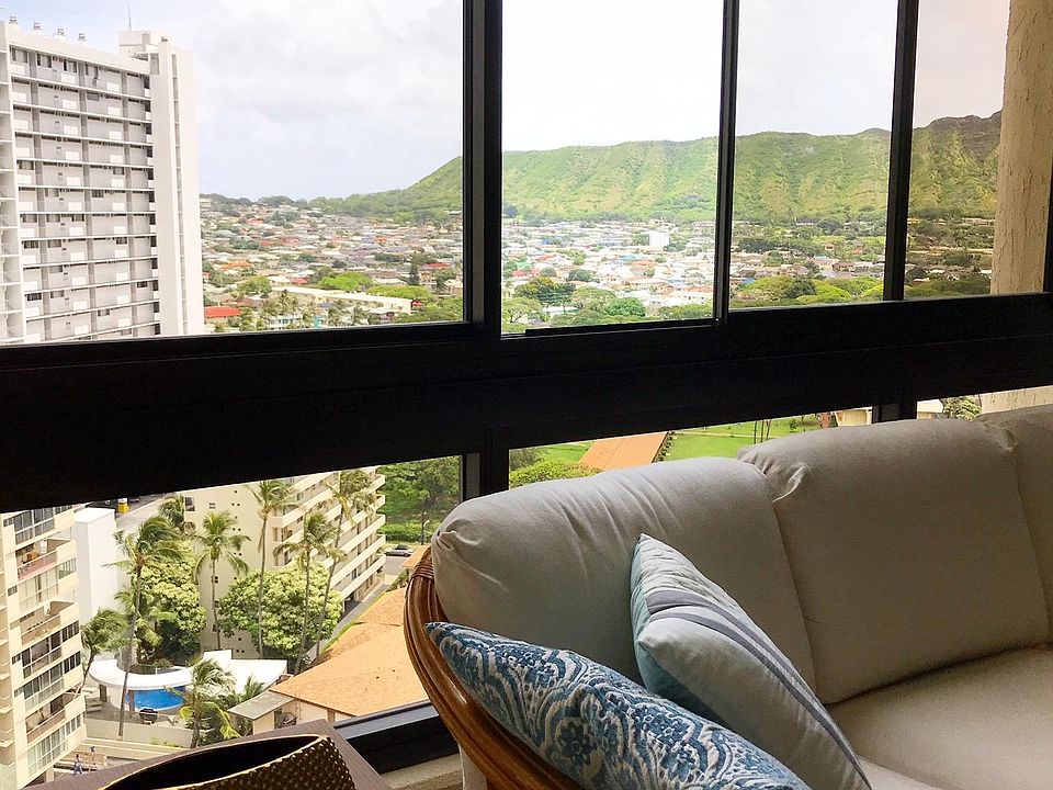 Enjoy beautiful diamond head views from this peaceful one bedroom unit in Liliuokalani Gardens- Queen Tower. Conveniently located on the outskirts of Waikiki; close to restaurants, shopping, world-famous beaches, the Honolulu Zoo and so much more. Secured building offers privacy and a peaceful ambiance. Parking can be rented from the building for a low fee. No pets allowed. Renters insurance required. *Some items in pictures are not included. Owner pays for water, sewer, and building fees