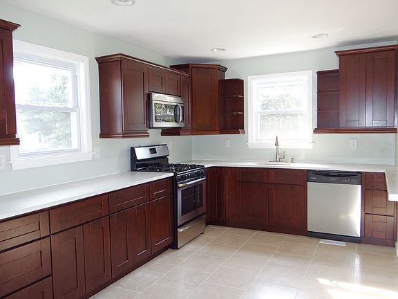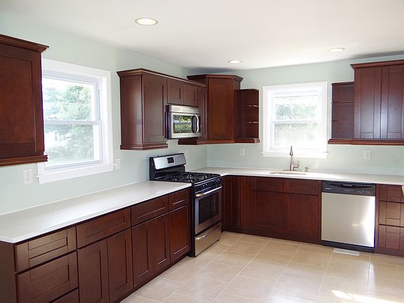Looking for one floor living??? Look no further, this home has been completely remodeled. New windows, new flooring (carpet & tile), new bathrooms and beautiful new kitchen. Enter in the large living room which opens into the dining room with plenty of natural light. Beautiful kitchen with solid wood cabinetry, stainless steel appliances and quartz countertops. A breakfast bar overlooks the dining room. Nicely sized bedrooms, the master has an on suite half bath. The main bathroom has been completely remodeled with new tile, new tub, new vanity and new toilet. A large basement that could easily be finished into additional living space. There is also original oak flooring under the carpet. Rear driveway is in the back of the home for off street parking. A one year home warranty is also included. You won't be disappointment in this home!!