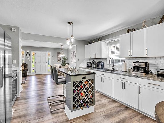 This beautifully renovated home now has neutral colors throughout to seamlessly integrate into your style. Covered front porch and back deck provide outdoor enjoyment spaces. The back yard is inspiration for imagination! The interior is so refreshing with new LVP, fixtures, counters, island with built in wine rack, and more. The counter space and cabinet storage is plentiful. Laundry is currently in the basement and has the potential to be located in space behind the kitchen as a stackable unit. Primary bedroom has a walk in closet. Don't overlook this gorgeous home in the low $200k's. See Agent Remarks.
