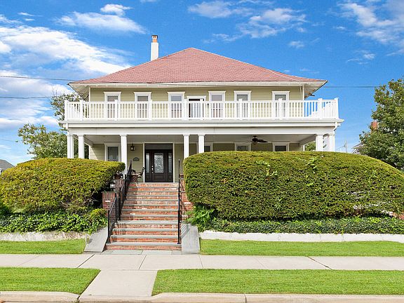 Turn of Century Charm. Enjoy sea breezes and amazing views of Shark River from the blue stone slate front and side porches or the second floor balcony. This grand home is located three blocks from Avon beach, one block to Shark River. High ceilings throughout, five bedrooms & three full baths, hardwood floors, wood burning fireplace, two-zone central air conditioning; over-sized garage & parking for additional five cars through the lane of this flag shaped lot. Total of 8,881 square feet of lot area on this over-sized corner lot. The home is approximately 3,360 square feet. This is a one of a kind opportunity in Avon-by-the-Sea!