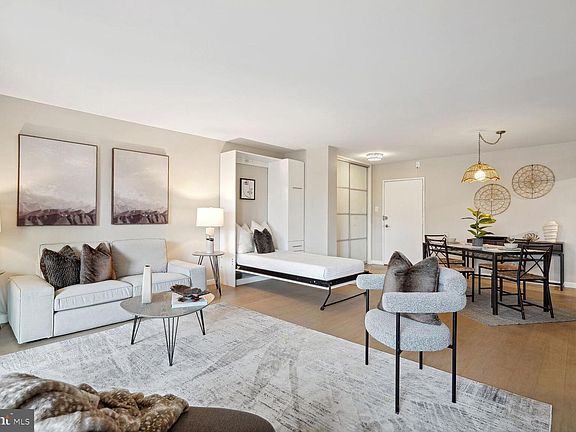 This spacious 1-bedroom 1 Bath 745 sq ft condo is PERFECT for that discerning buyer with an eye for style and functionality. Notable features include a large living/dining area with wide plank Bamboo wood floors, a huge picture window and a sliding glass door that leads to your own private balcony. To maximize on space, a built-in Murphy bed is neatly tucked in the corner of the main living area making it easy to host overnight guests. The modern kitchen with sleek, grey cabinets, stainless steel appliances and upgraded counters is perfectly situated off the dining area. A large entry closet with gorgeous modern glass slider doors and custom-built ins provides ample storage right when you first walk in (a rare find in many homes!). The sizable bedroom off the main living area has another large, also custom closet with the same beautiful sliding modern glass doors. A tall, corner window provides natural light and tree top views completing the serene feel of the space. Keeping with the modern flair throughout, the full bath features stylish, floor to ceiling tile that is sure to impress. A third closet with built in shelving adds yet more storage to the hall area outside the bedroom. In the lower level of the building, you will find the laundry room, a bike room and a storage room. Storage and Parking for rent, when available. The apartment is in the Carrollsburg Condo complex, with onsite management, Concierge services, a beautiful outdoor swimming pool and extensive manicured grounds for you and/or your furry loved one to enjoy. Investor freindly. The SW Waterfront Metro is a stone's throw away. Safeway is across the street! A short walk to shopping, Arena Stage and fine dining in SW Waterfront. WHAT A LOCATION AND VALUE! Come see for yourself! Open SAT. Feb. 10Th from 1-3 Use Intercom by front door to call front desk. They will buzz you in. Take elevator to 1st floor. IF NO ONE ANSWERS WHEN YOU BUZZ PLEASE CALL ME TO BE LET IN-PHONE # ONLINE