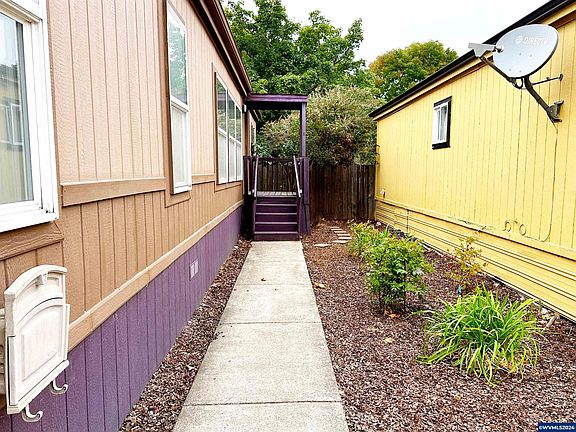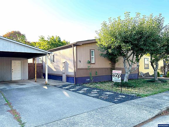 NEW PRICE!! This double wide in all ages and affordable space rent under $650, Rosewood Estates park is ready for new memories! Near I-5 for easy commute, a stone's throw away from shopping & food! Walk to Linn County Fairgrounds & Timber-Linn Park! Exterior features brand new roof, shed in carport, two healthy apple trees & large fenced in back yard w/plenty of space for shed, hot tub, etc..Interior features new LVP flooring, two recent bathroom remodels, and newer interior paint throughout!
