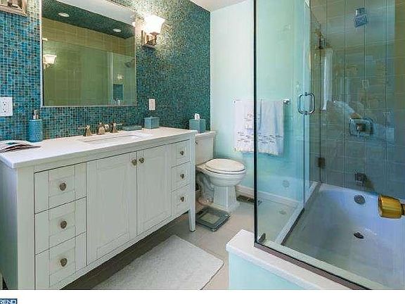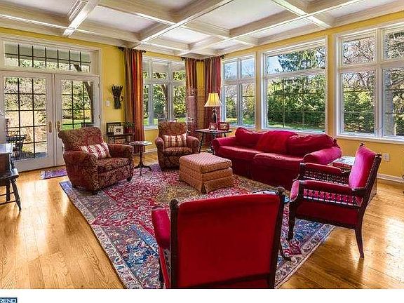 This Craftsman Style home is located in the premier neighborhood in Moorestown. Just steps away from the middle school and high school. It boasts one of the largest lots in the area, complete with gorgeous landscaping, a beautiful bluestone patio, and a wrap-around driveway. Stepping through the front door into the foyer you'll notice the authentic stained Oak Craftsman-style mouldings. To your right is a huge Living room complete with brick fireplace and over-sized windows allowing natural light to flow into the space. Moving through the living room you enter the dining room with huge bay window overlooking the gorgeous back yard. Built-in cabinetry and a countertop connect the dining room to the kitchen for convenient serving during parties. Once you step into the kitchen, you'll find custom cabinetry, an exposed brick wall, stainless steel appliances, two sinks (one on countertop, and one on the over-sized island), and an attached breakfast room next to a huge peninsula. The kitchen floor plan is very open to both the breakfast room, and the new family room addition completed a few years ago. The family room includes custom built-in cabinetry, an intricately coffered ceiling, a fireplace, and 8 over sized windows with transoms plus a double french door leading out to the bluestone patio in the back yard. A few steps lead down from the family room to a private in-law or au pair suite complete with private entry, sitting room, bedroom and full bath. Another small set of stairs leads up to a suite of two bedrooms with jack and jill shared bath between them, powder room, and a laundry area. Heading back to the front entry is a hall leading to another bedroom with its own private bathroom, and the master suite. The half bath off the hall has been beautifully updated. The master suite features two walk-in closets and a private bath also recently updated complete with two separate vanities, a frameless glass shower enclosure, and exquisite finishes. Just off the foyer is a wood paneled office overlooking the back yard. The home has a two car garage with stairs leading to a very tall crawl space perfect for storage. Between the huge yard, updated kitchen and bathrooms, and phenomenal location, you can't go wrong with this home.