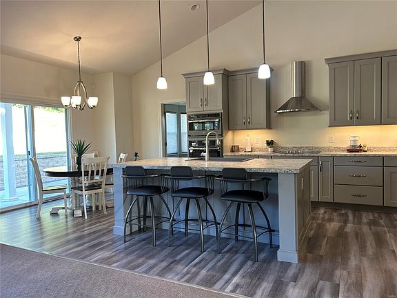 Imagine over 4200 sq ft of living space nestled in a cul-de-sac, within one of the most desirable neighborhoods in Washington MO! Inside you will discover a stunning custom kitchen featuring a center island, soft-close drawers, and stainless steel appliances. This divided floor plan includes a spacious master suite with coffered ceilings and a luxurious custom-tiled master bathroom, complete with dual sinks, a large air-jetted tub and a custom shower. The great room boasts custom built-in book cases, perfect for cozying up by the fireplace while watching the snow fall outside through the wall of custom windows. The downstairs feels like an entirely separate home, with a large living room, a large workout/playroom that is prepped for an additional kitchen, it has its own laundry room, 2 more full bedrooms, and 2 more full custom-tiled bathrooms. Did I mention it also has large covered patio and an oversized