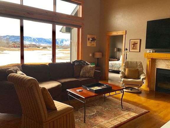 Beautiful custom home, built by Evergreen Dwellings on a 1/2 acre golf course lot at The Powder Horn Golf Community. Custom upgrades throughout including red oak floors, new carpet and paint, Alder doors and trim; kitchen with new granite slab counters, stainless appliances, pantry. AWESOME Big Horn Mountain views from all rooms, large picture windows in living room with gas fireplace and walk-out patio. Lovely master suite and two additional guest bedrooms. Oversized lot with plenty of space surrounding this home and Rainbird lawn irrigation. Views are unobstructed and lot borders the Powder Horn Golf Course. Powder Horn Club offers owners membership options for access to golf, golf simulator, clubhouse amenities,, dining, social events, tennis, pool and fitness center, and fishing.