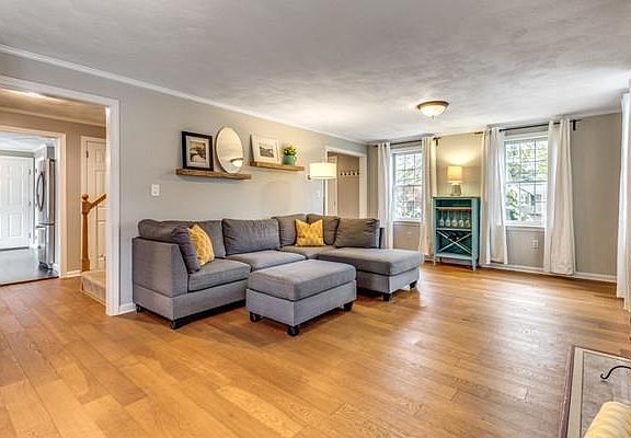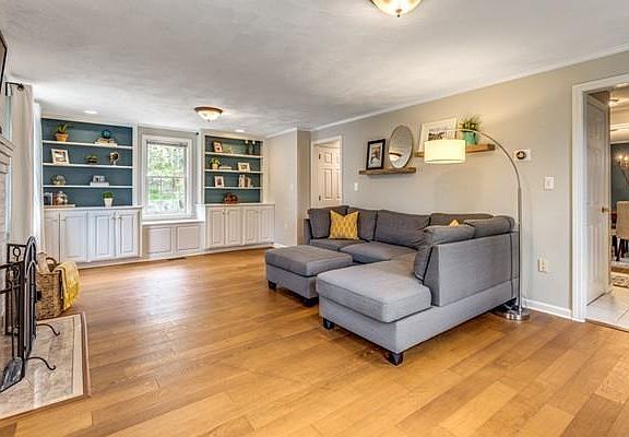 This Beautifully maintained 3 bedroom Salt Box Colonial is move in condition. Enjoy winter evenings by the fireplace in the front to back living room with built in cabinets and shelving. Dining room showcases built in china cabinets and hardwood flooring. Kitchen has wood cabinetry with butcher block counter tops, under cabinet lighting and Stainless Steel appliances. Enjoy the Spring, Summer and Fall in the sun drenched porch 3 season porch off the kitchen. Second floor has an over sized master bedroom and two additional bedrooms. Home office with skylight. Never a wait with two full baths. Added space with finished family room in the Lower Level. CENTRAL AC , UNDERGROUND SPRINKLER SYSTEM AND 2 CAR ATTACHED GARAGE.. Short distance to Rte. 93 and commuter rail. This home is move in ready. SELLER CAN ACCOMMODATE A QUICK CLOSE.