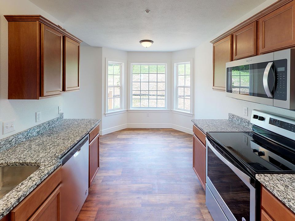 - Appliances: Dishwasher, Disposal, Microwave, Free Standing Stove: Electric, Exhaust Fan/Microwave