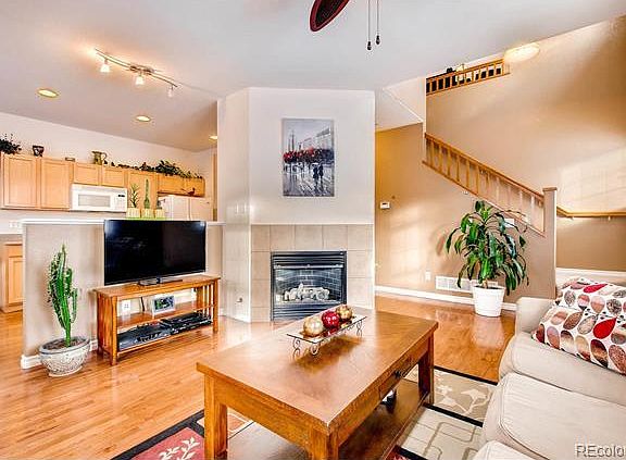 Immaculate Townhome with upstairs Master Bdrm with 5 piece master bath/walk in closet /outside balcony, 2nd bedroom also with walk-in closet and separate bathroom. Upstairs laundry room with W/D. Spacious loft upstairs great for office or TV room. Downstairs is hardwood floors, living room with electric fireplace, separate dining room, and kitchen with all appliances--Microwave, stove, refrigerator, dishwasher and garbage disposal. 1/2 bath off the living room and outside patio for grilling. Attached oversize two-car garage with outside parking. Crawl space which has storage area. Close to the N line station and in walking distance to Arvada Recreation Center. Owner pays home owners dues but renter pays water, gas, and electric. No smoking or pets. Plenty of parking in front of garage and guest parking spaces nearby.
