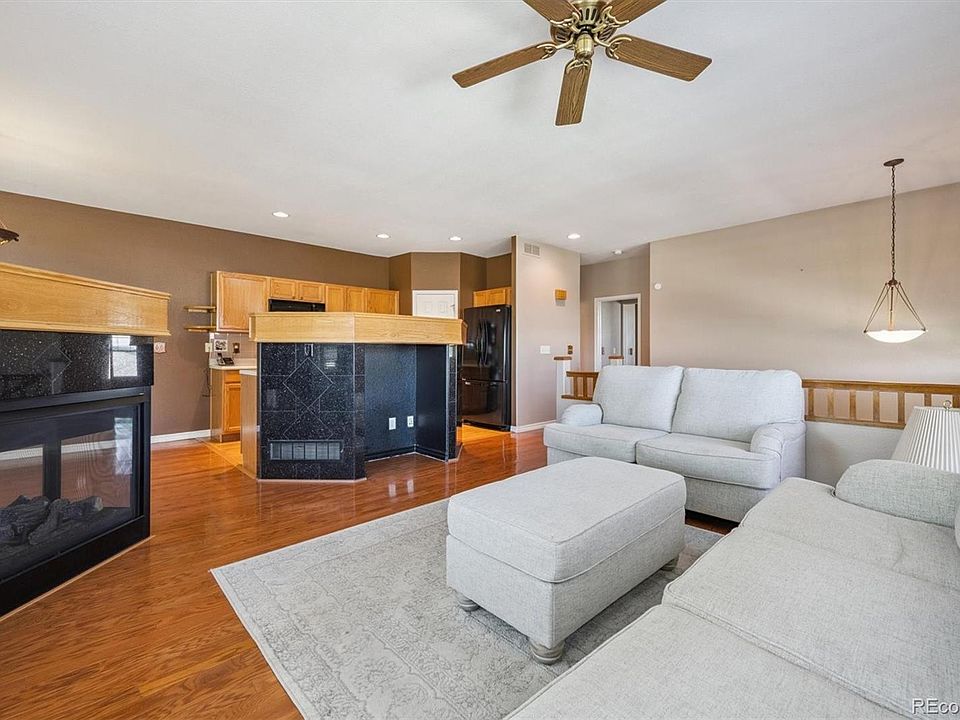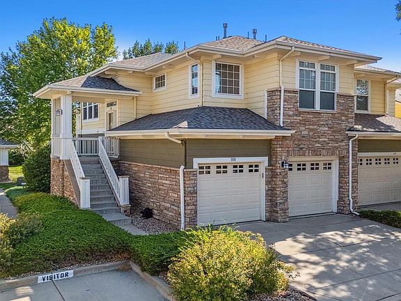 Huge Price Improvement! Located in the quiet and well cared for community of Homestead at Seven Stones, this move in ready three bedroom, three bathroom townhome has it all! Just steps from your front door this end unit overlooks the sunny green space with a nicely shaded gazebo for convenient access to the outdoors, perfect for pets and kids. With hardwood flooring throughout, the open floor plan flows between the living room, dining room and kitchen with access to your private balcony overlooking the courtyard. The kitchen offers a huge pantry and a centrally located island. The double sided fireplace can be enjoyed from each room! The primary bedroom with ensuite five piece bathroom offers privacy, located separately from the secondary bedrooms which are located downstairs with their own full bath. This makes the home a great candidate for a roommate to rent or an investment property! There is plenty of parking, with the 2 car attached garage and 2 car driveway, features that are hard to find! Prime location offering easy access to just about anywhere, including I-25, Downtown Denver, Denver International Airport, and plenty of shopping, dining, and entertainment options. Carpenter Rec Center and Carpenter Park are both a quick walk or drive away and offer plenty of things to do, including basketball courts, tennis courts, walking trails, picnic areas, a skatepark, paddle boat or canoe rentals and more!