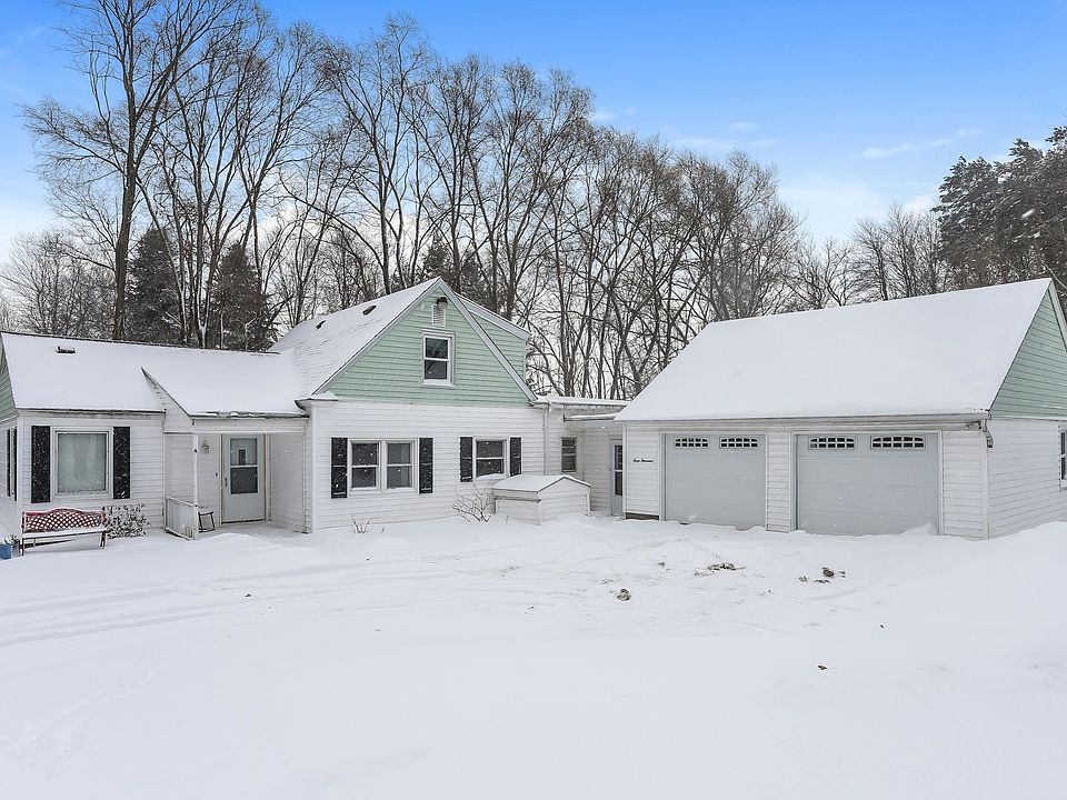 Delightful home recently updated in Byron Center Schools on an almost 2 acre park-like setting. The home features an open living/dining/kitchen area, a master bedroom with double closets and a large picture window, an additional bedroom, full bath, laundry/office and sunroom on the main floor. The upper level features two bedrooms and a full bath with double sinks. A breezeway leads to two stall attached garage with a loft.Newer Items: main living area and kitchen, office cabinets, air conditioning 2018, windows in upper level and some on main level, water heater, carpeting and flooring, upper bath counter and tile, garage doors.