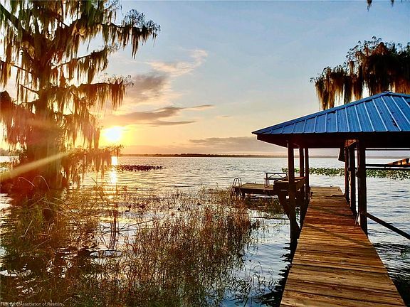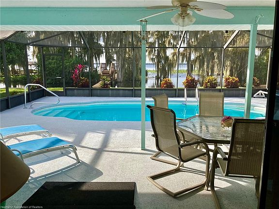Paradise in Lake Placid! Rarely does a property come along that not only impresses the eye but tugs at your soul. The front has incredible curb appeal with light sea foam green clapboard siding, long lasting standing seam metal roof. Inside opens up to an amazing view looking out over the pool and lake Istokpoga with submerged cypress and incredible sunsets. Lake Istokpoga is 26k acres of supreme fishing, and nature at its finest. If you enjoy entertaining or just love to bake, you'll love the large kitchen with center island that features high-end convection stove, stainless appliances, built-in trash cans, and soft close drawers. The open-to-the-kitchen living room has a cozy wood burning fireplace and vaulted ceilings. The third bedroom opens up to the living room with sliding doors allowing it to be a great office, den, library, the other two bedrooms are on opposite sides of the home each with a full bathroom. Other really nice things to note... All hard surface flooring for easy cleaning and easier on allergies, attic fan to help cool the house down or take out cooking smells, newer vinyl tilt-to-clean windows, large screen pool enclosure, drawbridge style boardwalk out to the boathouse (to allow the canals to be cleaned), property comes with its own boat ramp, expensive and maintenance free concrete seawall, There is a small HOA for this little community that pays for the water and sewer and maintenance of the road ($100 initial investment then $145 per month). Please drive slow down dirt road strict speed limit 15mph. Be cautious there are a lot of Sandhill cranes, turkeys, and other animals that share this community.