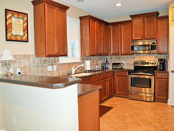 Saltwater Pool Home in Golf Course Community. 4 Bedroom 2 and a half bath. 42" Kitchen Cabinets, Corian Counters, large pantry. Large Breakfast Nook open to Family Room, custom built-in cabinets wired for surround sound. AddItional Flexroom off of Family Rm. Master Suite w/large retreat, his and hers vanities, separate shower, Roman tub and a Huge Walk-in Closet. 3 additional bedrooms share a full bath with dual sink areas. Convenient second floor laundry room. Lush tropical landscaping surrounds the large brick paver deck. Saltwater pool and outdoor fire pit complete your Florida lifestyle. Fully Fenced yard has 2 gates and money saving Separate Irrigation Meter. Brand new HVAC. Top Rated Schools, Amenity Center includes Fitness Center, Basketball Courts, Tennis, and Multipurpose Field. NO CDD FEE!!!!!