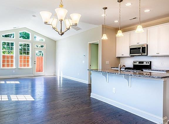Spacious, open floor plan with large kitchen island. Master on the main with tiled walk-in shower w/seating, separate vanities and large walk-in closet. Kitchen features granite counter tops, tile backsplash, hardwood floors and stainless less smooth top range, microwave and dishwasher. Walk-in unheated storage room upstairs as well as 2 bedrooms and a full bath. Beautiful exterior in a charming community. Must See!!