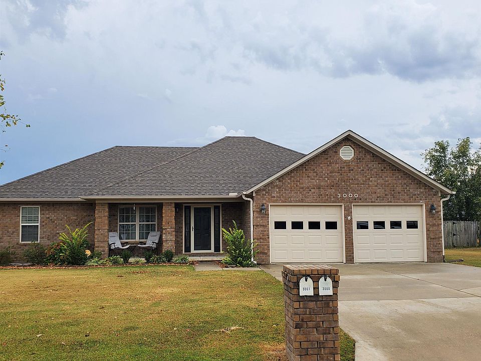Beautiful three Bedroom two bath house with a large two car garage and a huge Backyard. Hardwood flooring and Tile in the Kitchen Crown Molding and 2 Bathrooms, walk in closets and carpet in the bedrooms. No pets and no smoking in this house. Fenced in backyard. Split floor plan. House is move in ready.