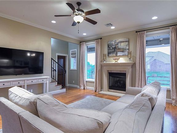 Exquisite home in sought-after Cascade Estates! This stunning home offers it all! Exceptional construction with attention to detail, this home was Built by David Williams, a long time premier home builder in Norman. Offering a great floor plan with incredible high end finishes throughout! The owners suite and another versatile bedroom or study with wood floors are downstairs! There are 2 additional bedrooms upstairs plus a large rec/media room up! Hard wood floors flow through the lower level, solid core doors, crown molding, 4 inch baseboards and custom cabinetry are just a few of the extras! The windows on the lower level are all wood trimmed and custom drapery & window treatments are throughout the home! The kitchen offers chef-grade appliances including a 5 burner gas range! The living boasts a cast-stone fireplace with gas logs. The easy maintence yard offers just the right size backyard to enjoy the outdoors, especially since it backs to the greenbelt, yet low maintenance!