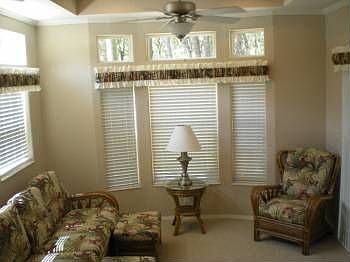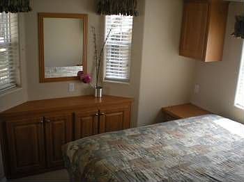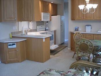 Built in 2008 this charming 1/1 furnished home features many upgrades to include; high vaulted ceilings, stucco indoors, pane window sliders, etched wood kitchen counter tops, side by side full refrigerator, stackable washer and dryer, to name a few. This home has unique qualities you will appreciate, a must see! Practically maintenance free. You own the land! Sit back and relax in this quiet atmosphere. No neighbors across the street! Community includes; public swimming pool, convenience store, shuffle board, basketball court, game room, laundry facilities, security, church, bingo. This gated community has something to offer to everyone. HOA only 133.00 per month, water, sewer, and 6 day garbage p/u included.