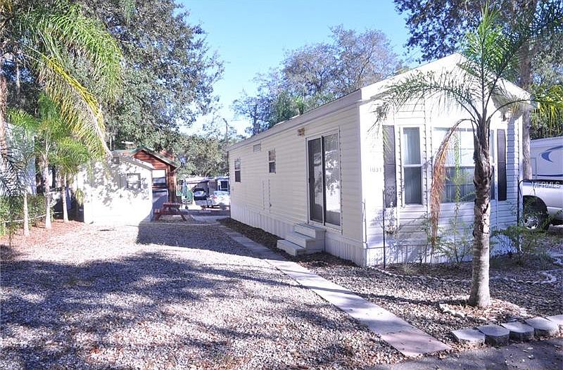 MOVE-IN-READY!! Truly clean and is ready to be your home. This one bedroom, one bath with a kitchen, living room combo is waiting for you to see. The amount of storage is amazing, both in the kitchen and bedroom. It is carpeted throughout and has ceiling fans for your comfort. A chair rail and built in china cabinet makes for a defined dining area. The curtains and valances stay as they complement the color of the carpet. A shed offers more storage for your things. This is like country living, yet close to shopping, hospital, and restaurants. The park offers a 24/7 staffed gatehouse, community pool, water, sewer, trash pick-up six days a week, on site condo office and other recreational options all for your convenience.