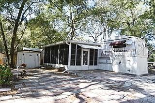 "Investors, seize the opportunity to own a parcel of land within this thriving community. The property includes both the structure and the land itself.” Nestled within the serene confines of Yogi Bear Jellystone Park lies this charming 1-bedroom, 1-bathroom property, perfect for investors seeking potential. Remodeled in 2019, with a roof re-coat in 2020 and a large hot water heater installed in 2024, it ensures comfort. Boasting a built-in Florida room, the residence offers expanded living space, ideal for relaxation or entertainment. Additionally, the property features a convenient storage shed. Situated at the back of the neighborhood, tranquility abounds in this peaceful setting. Residents will enjoy access to a plethora of amenities, including a community pool, mini-golf course, basketball court, laundry facilities, recreational hall, and trading post, ensuring a fulfilling lifestyle within reach.