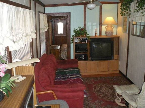 2 Bedroom 1 Bath Manufactured Home on a corner lot inside RV park. Large open shaded porch area for sitting and relaxing. Fruit trees and foliage all around the yard for lots of shade. Water, sewer, 6 day a week garbage pick up and all the amenities are included in the HOA fee. Amenities include: public swimming pool, convenience store, shuffle board, basketball court, game room, laundry facilities, security, church, bingo. This gated community has something to offer to everyone. The park has seen many great changes; fresh paint throughout main areas, recently replaced water supply tank, many roads within the park have been repaved, a new entrance sign to the park has been ordered and the proposed budget for 2011 reflects lower HOA dues! Great community to live without the high costs.Call Steve for more info 407-920-6797