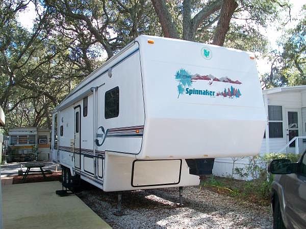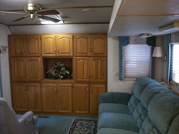 Property is being sold as a vacant lot, concrete slab, utility shed which includes a 1995 custom built fifth wheel. One owner in great condition! Has never been smoked in and never any pets. Living room/kitchen and bedroom slide-outs New Dometic electric/gas refrigerator only three months old. 110 and 12 volt lighting. Oak cabinets throughout. Tons of storage space. Furnishings include table and chairs, couch with recliners at each end and massage and heat controls, rocking/swivel chair and queen sized bed with matching comforter and shams. Other features include ducted A/C, ceiling fan, radio with living room and bedroom speakers, convection microwave, day/night window shades, and three burner gas stove with oven. Has three closets and two pantries. Three storage spaces underneath. Nice shady lot with patio, storage shed, graveled parking and automatic sprinkler system. The shed has water and electric and includes a washing machine. HOA dues are $120 a month. Water, sewer and garbage pick-up are included in the HOA dues. This may be the place for you if you're looking for a reasonably priced place to live in the Orlando area that's close to everything