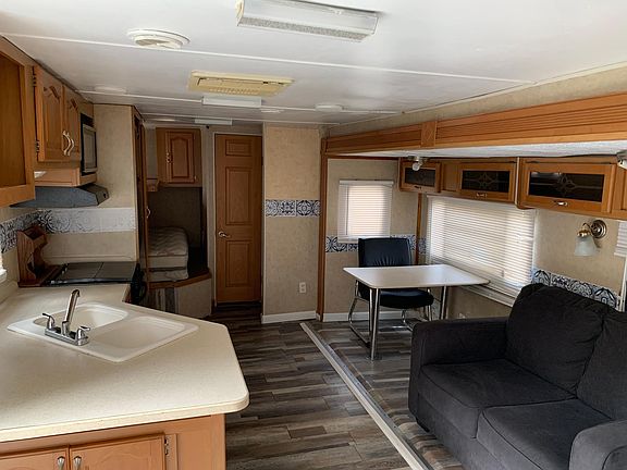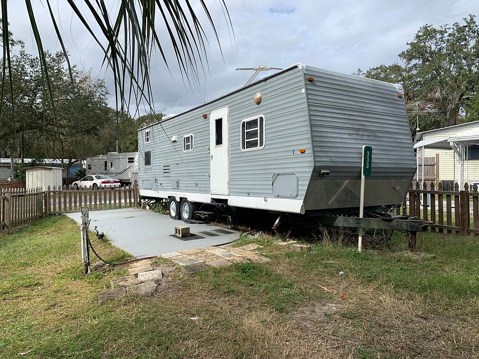 Travel camper in RV park for rent. One bedroom and one bathroom with bunk beds. Located near West Orange trail and close to bus route, shopping, hospital, 30 minutes from Disney. Rent includes water, sewer, garbage pick up, gated community with virtual guard, swimming pool, basketball, shuffleboard, mini-golf and much more. One Year Lease Required, Deposit, And Background Check. No evictions, 3x verifiable income.