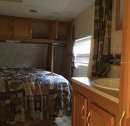 1 bedroom 1 bath park 5th wheel trailer. Ready to move. Washer and dryer hook ups in utility shed. Wood laminate flooring throughout, window treatments, ceiling fans and fixtures. Move in ready. Rent includes water, sewer, trash pickup six days a week, 24/7 staffed gatehouse, usps mail box, 110,000 gallon Pool, Community Patrol and maintenance of community grounds. Our location is very convenient, main road access with lots of dining and shopping close by.