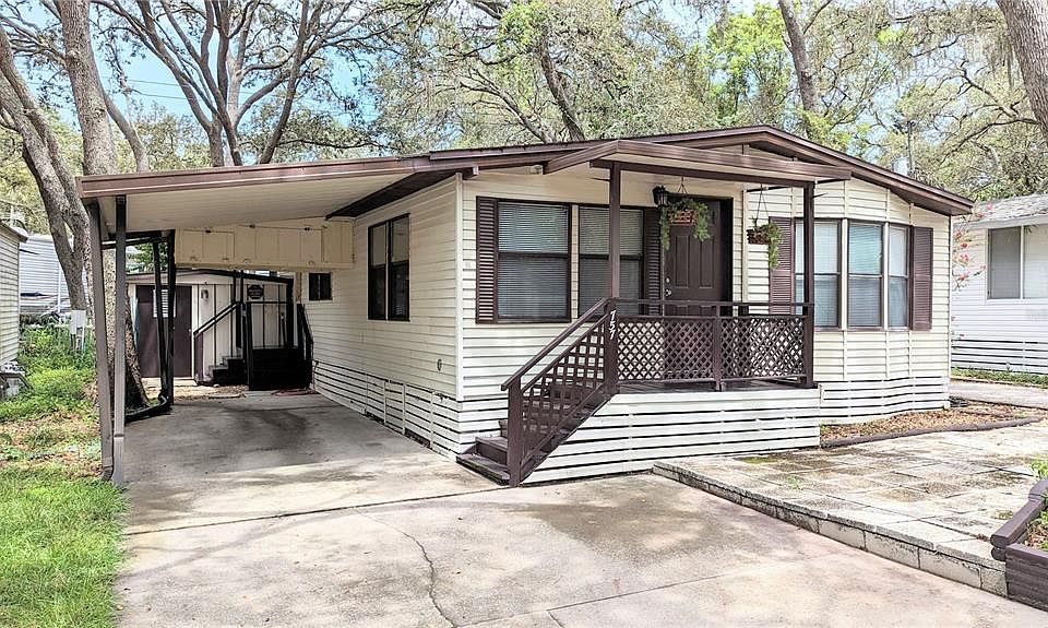 Enjoy your new home sitting under the shaded canopy of trees on a quiet, woodsy road on YOUR OWN LAND, and only 25 minutes from downtown Orlando. This lovely, well-maintained 2/1 home offers an additional bonus room/den/office with a private entrance. In addition, this home offers a front porch, covered car-port, washer/dryer hookups, and a utility shed, along with additional storage. Enjoy a resort-style community offering a community pool, a basketball court, a shuffleboard court, a putt-putt course, 24/7 gated security, an on-site Condo and Management office & an active social community! The community also provides easy access to major highways, Disney World, Universal Studios, and additional attractions that Orlando has to offer!