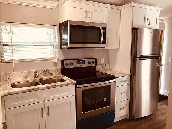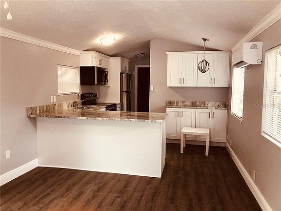 This beautiful, move in ready home is in a quiet, heavily treed community with very low monthly maintenance fees. Own your own large lot with manufactured home in a great, gated community that is close to all major theme parks. Resort style living at its best. The community boasts a commercial size swimming pool, hosts special holiday breakfasts and dinners, Bingo, basketball and putt-putt golf plus more. All new appliances! There is a set-up for your own washer/dryer. Water, sewer, garbage pickup included in monthly fees. Private security on premises, guard gate active 24/7. Application for homestead exemption available. Priced for quick, as-is sale! Live full time, use as a retirement home, starter home, or could be a great investment opportunity. Won't last!