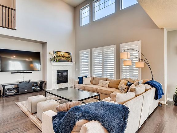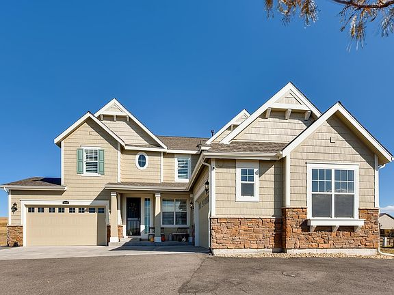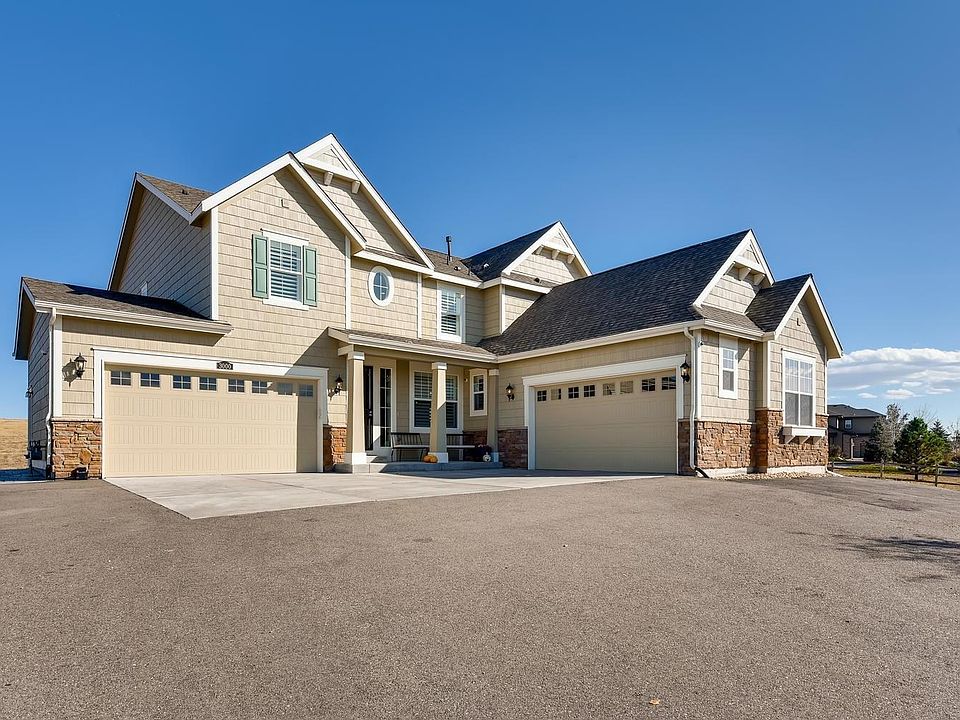 Rested high upon the hill in Elkhorn Ranch, just Southeast of Southlands Mall, lies a beautiful 5 acre lot w/ a gorgeous 2 story home with 5 bedrooms and 5 bathrooms. Featuring vaulted ceilings, plantation shutters, a breathtaking kitchen w/ a massive granite island, gas range, and double oven w/ convection. The main floor includes a bedroom w/ an attached full bathroom as well as a formal dining room. Upstairs, you'll find the master suite w/ 5 piece bath and a walk in closet that conveniently connects to the laundry room. There is a huge loft in addition to 2 bedrooms and w/ a Jack and Jill bath. The basement has been fully finished to include a huge space for entertaining, dry bar, a bedroom, and bathroom w/ a stunning shower. Don't miss out on the huge backyard that's perfect for entertaining. Featuring a built in gas grill, custom stamped concrete patio, and a huge playground. Come and see the beauty of 5 acres in Parker just minutes from town.