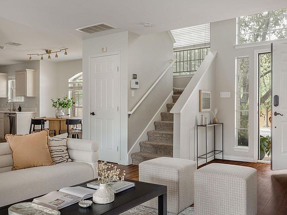 Just a block from Cowan Elementary, this Cherry Creek gem sits pretty on an oversized corner lot with a full front landscaping overhaul! No rear neighbors mean extra privacy, and the rare rear-entry 2-car garage is tucked away on a private drive. - Inside, fresh painted cabinetry and brand-new kitchen countertops give the heart of the home a crisp, updated feel. Natural light pours through oversized windows, highlighting the warm wood floors and inviting finishes. You’ll love the two living spaces—one upstairs, one down—plus a cozy fireplace and a wall of windows overlooking the backyard. There’s even a sunny bonus room that’s perfect for plant parents, a reading nook, or your morning coffee spot. - All three bedrooms are upstairs. The primary suite feels like a retreat, with treetop views, a soaking tub, separate shower, and spacious vanity. - Located in South Austin with great schools, you’re just minutes from H-E-B, shopping, dining, the neighborhood dog park, and walking trails. Quick access to Mopac, I-35, and Southpark Meadows—only 11 miles to downtown—makes life and commuting a breeze.