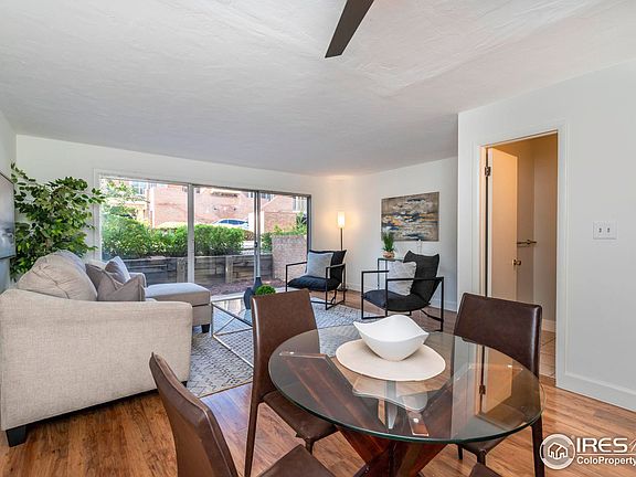 Charming 2-Bedroom condo, versatile and ideal as a primary residence, student housing, or as an investment opportunity. This condo's prime location near the newly completed underpass ensures easy walking or biking access to CU campus, surrounding restaurants, shopping, and the Boulder Creek Path. Enjoy living in the heart of Boulder while benefiting from the tranquility of common areas and pools. The main level features an open layout seamlessly connecting the kitchen, dining room, and living room to a spacious patio, perfect for outdoor relaxation. There is also a convenient powder room for guests. Upstairs, two spacious bedrooms with ample natural light share a bathroom with double sinks, and one bedroom offers peek a boo views of the Flatirons. The complex includes two refreshing pools, ideal for unwinding and enjoying sunny days. Shared coin-operated laundry is just 4 doors down from the unit. Dogs are allowed if owner occupied. Dogs are not allowed for tenants, but cats are OK. There are 2 parking spots available: one assigned spot #680 plus an additional permitted space. Additionally, this unit features new carpet, new interior paint, and a new refrigerator. Don't miss out on the chance to make this well-located condo your own!