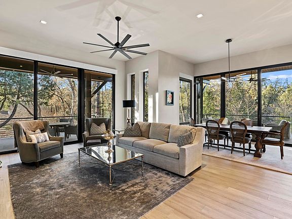 From the moment you enter through the impressive entry tower and welcoming covered foyer, you are greeted by soaring 12-foot ceilings and expansive windows that flood the home with natural light, offering breathtaking views of the golf course and beyond. The sleek modern mountain architecture is accentuated by natural materials and contemporary finishes throughout.